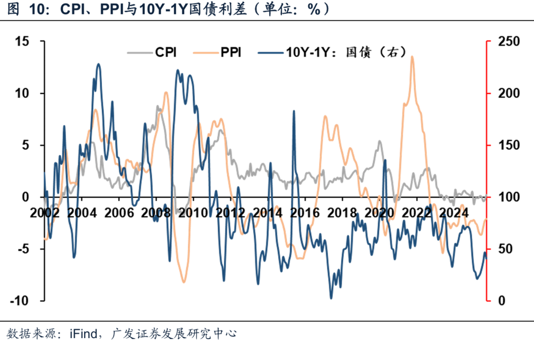 CPI/PPI最受债市关注,二者分别衡量消费端和生产端的通胀水平。从PPI二分法角度上看,CPI与PPI生活资料相关度较高,与PPI生产资料相关度较低,根据2025年数据测算,生产资料占PPI的权重约为75%,是PPI波动的主要贡献项。具体来看,PPI对CPI的传导存在两条路径:一是直接传导,由于CPI与PPI在口径上部分重合,二者统计口径上的交叉部分构成了通胀从生产端向消费端的直接传递;二是间接传导,是指价格沿着“上游-下游”的传导,从波动率上看,2010年直接由需求端拉动的通胀,反映为下游需求波动带动CPI与PPI同步波动,而2011年后为供给端推动的通胀,PPI波动率远高于CPI。